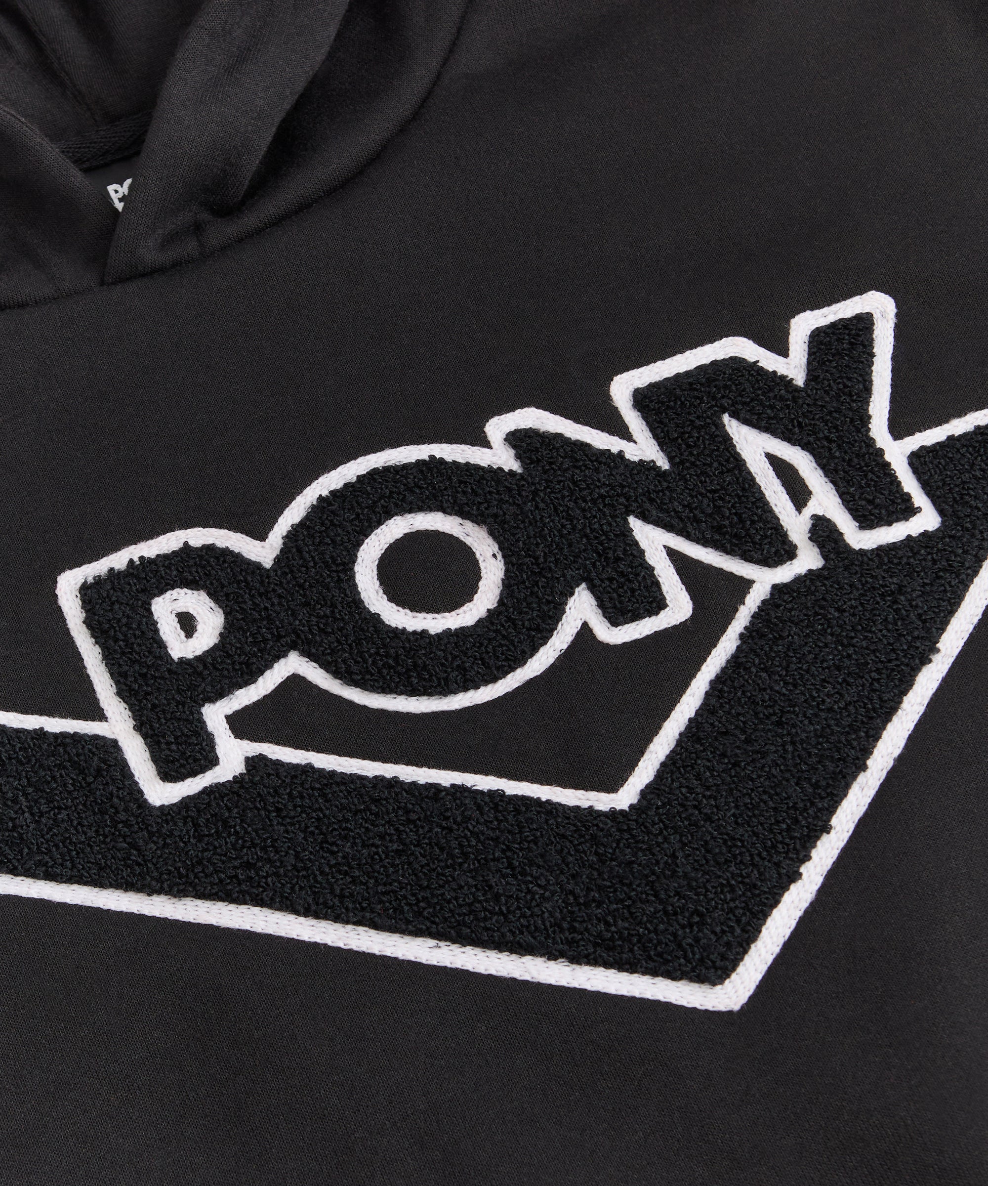 Pullover fleece hoodie with jacquard rib and chenille Pony chevron logo