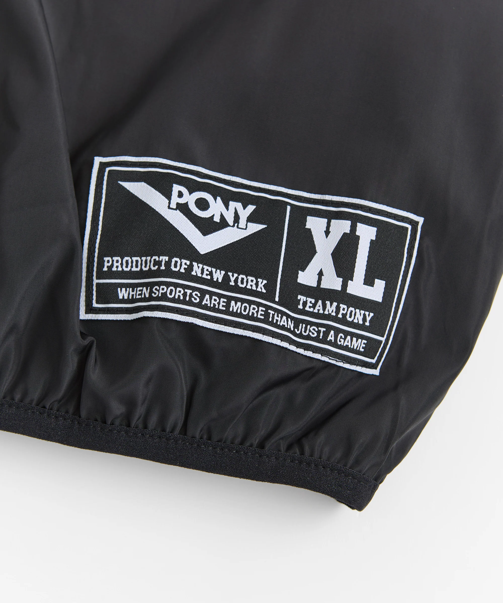 Quarter zip nylon jacket with custom Pony zipper pulls and heat press logos.