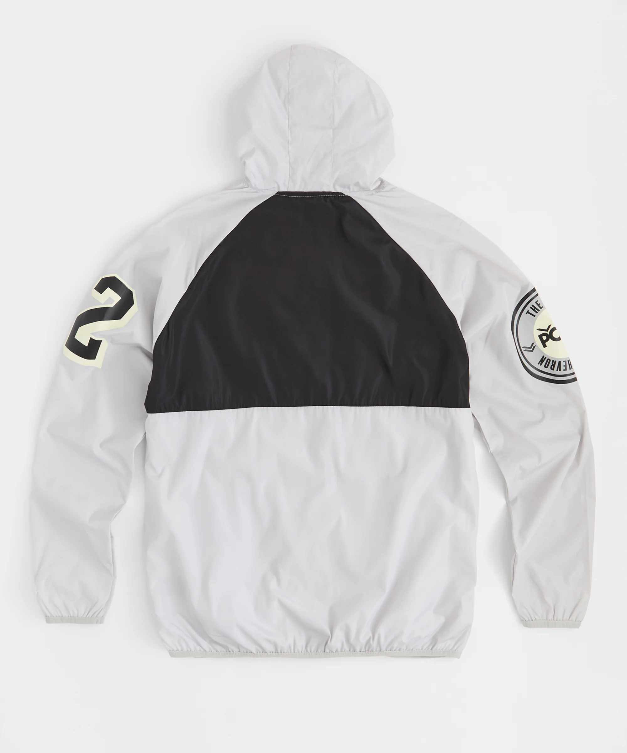 Full zip nylon jacket with custom Pony zipper pulls and heat press logos.